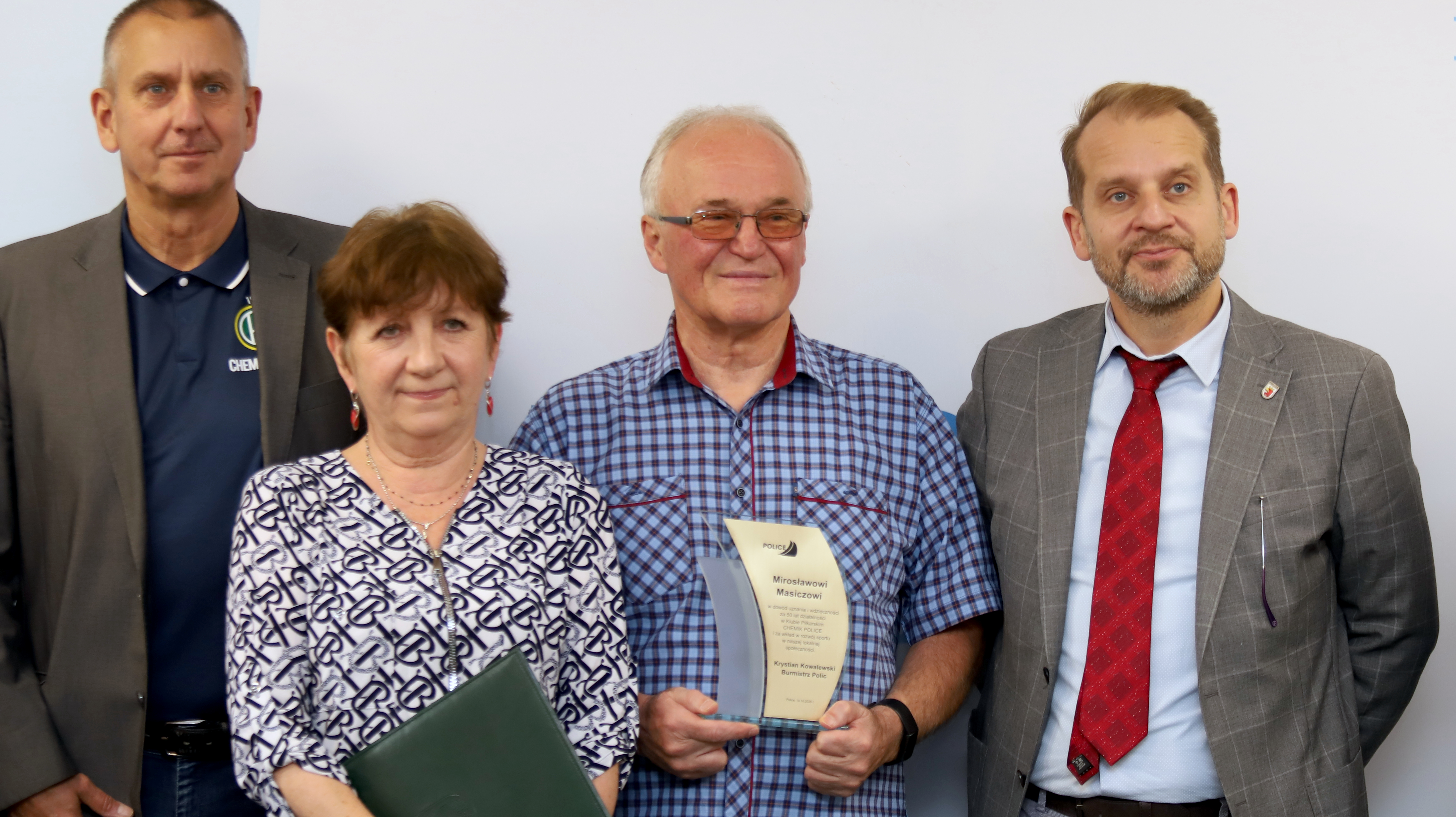 Burmistrz Polic Krystian Kowalewski uhonorował Mirosława Masicza, wieloletniego piłkarza, trenera i działacza Klubu Piłkarskiego Chemik Police.