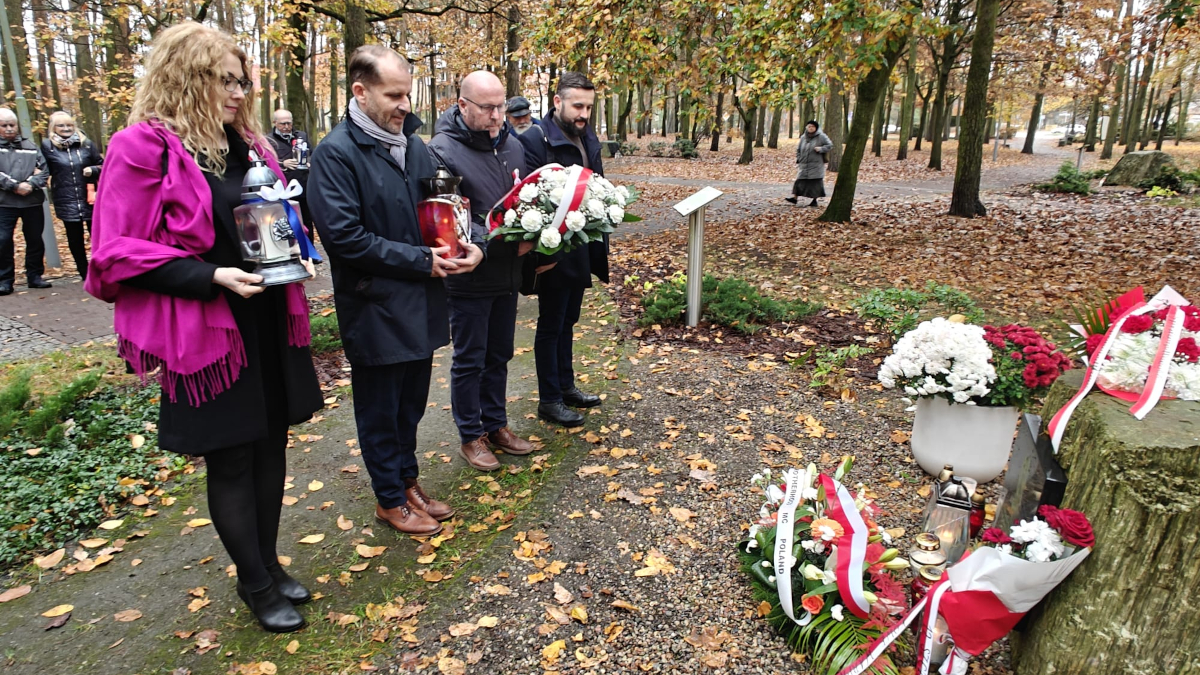 Następnie delegacje gminy Police oraz powiatu polickiego złożyły kwiaty i znicze pod głazem upamiętniającym Marszałka Józefa Piłsudskiego w Parku Solidarności. Uczczono w ten sposób jednego z głównych architektów niepodległej Polski – postać, bez której odzyskanie wolności w 1918 roku byłoby niemożliwe.