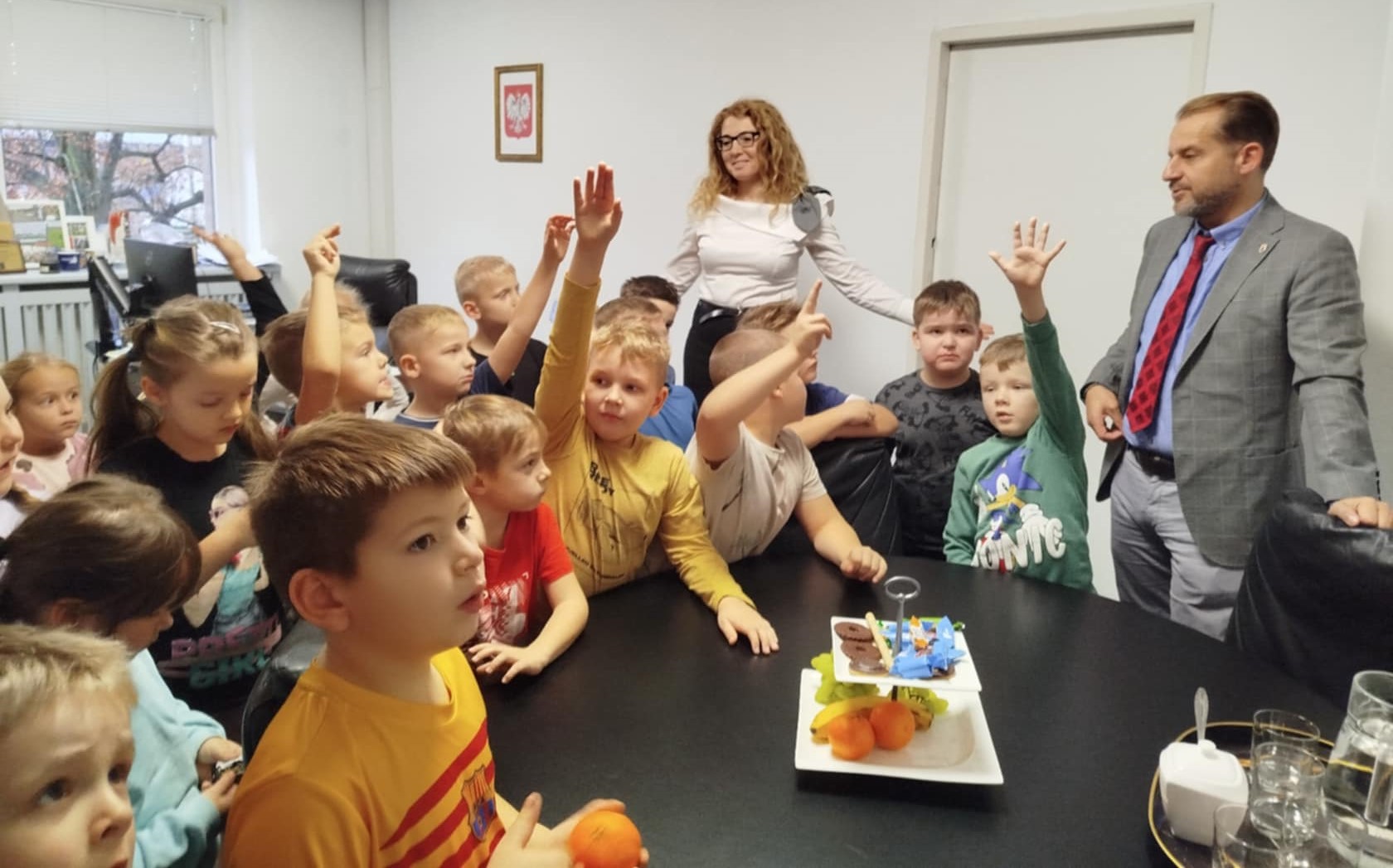 Dzieci chętnie zadawały pytania – niektóre bardzo dociekliwe i zaskakujące – dotyczące pracy w urzędzie, obowiązków burmistrza oraz funkcjonowania Polic.