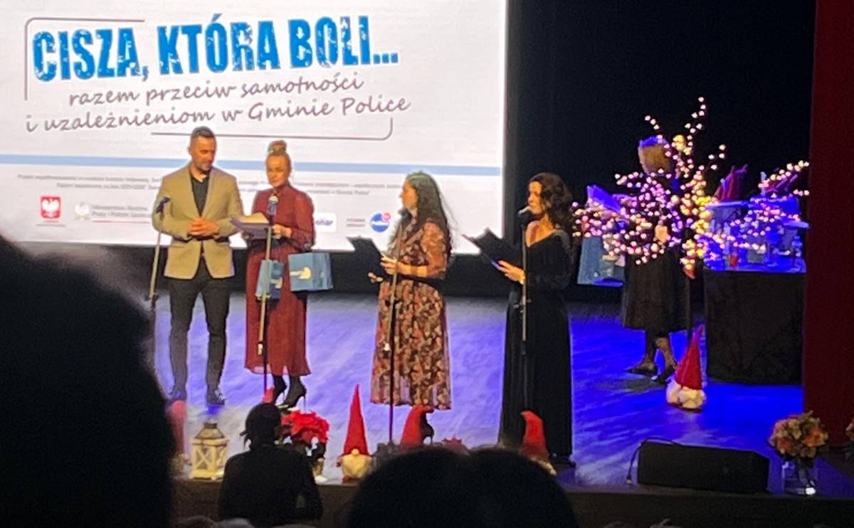 W Miejskim Ośrodku Kultury w Policach odbyło się uroczyste podsumowanie projektu „Cisza, która boli… razem przeciw samotności i uzależnieniom w Gminie Police”. Inicjatywa, realizowana przez Gminę Police we współpracy z lokalnymi instytucjami i organizacjami społecznymi, miała na celu przeciwdziałanie zjawisku samotności, wzmacnianie odporności psychicznej mieszkańców oraz podnoszenie świadomości w zakresie zagrożeń związanych z uzależnieniami.