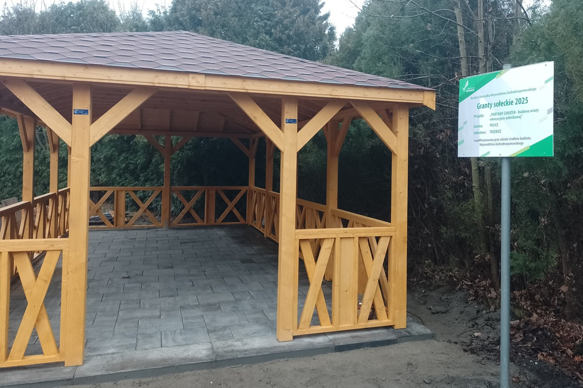 „Portowy zakątek…” został zgłoszony do konkursu marszałkowskiego w ramach Grantów Sołeckich 2025. Projekt się spodobał i na początku sierpnia gmina podpisała umowę z Urzędem Marszałkowskim Województwo Zachodniopomorskiego na dofinasowanie nagrodzonego projektu kwotą 20 tys. zł. Całkowity koszt wiaty (prace projektowe, materiały, dostawa i montaż) to ponad 28,3 tys. zł.