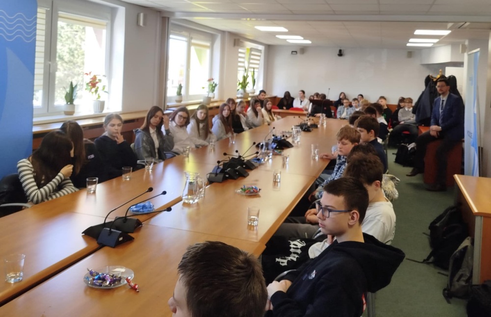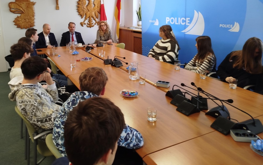 Wizyta uczniów szkół gminnych odbyła się w ramach lekcji wiedzy o społeczeństwie. Młodzi ludzie z uwagą słuchali o tym, jak się zarządza gminą, o strukturze instytucji, szczeblach administracji samorządowej itp. Ku zaskoczeniu burmistrza byli dociekliwi, interesowali się inwestycjami, naprawą dróg, ale też planowanymi wydarzeniami. Dopytywali np., czy będą Dni Polic.