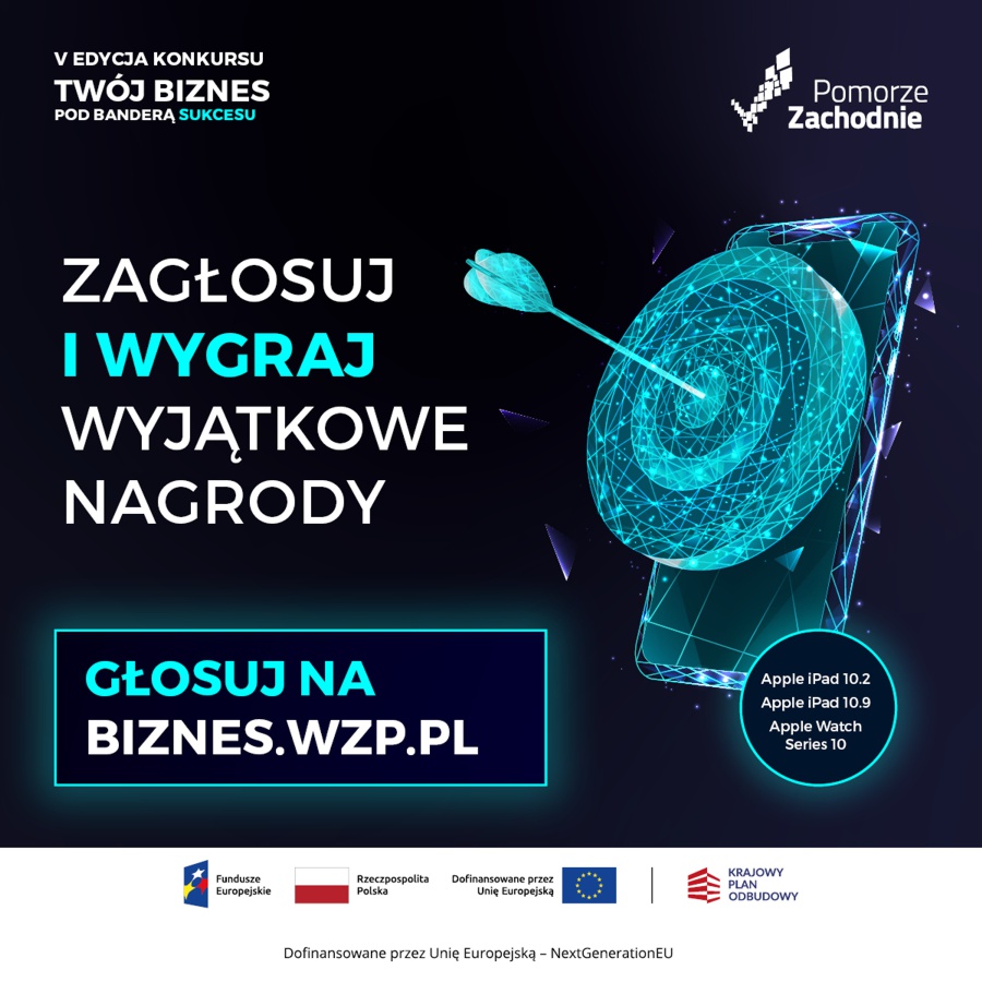Trwa kolejny etap V edycji konkursu gospodarczego „Twój Biznes pod Banderą Sukcesu”. Konkurs wyróżnia oraz promuje kreatywne i innowacyjne firmy z sektora mikro, małych i średnich przedsiębiorstw, które przyczyniają się do rozwoju Pomorza Zachodniego. Można głosować tylko do 9 lutego 2025 r.