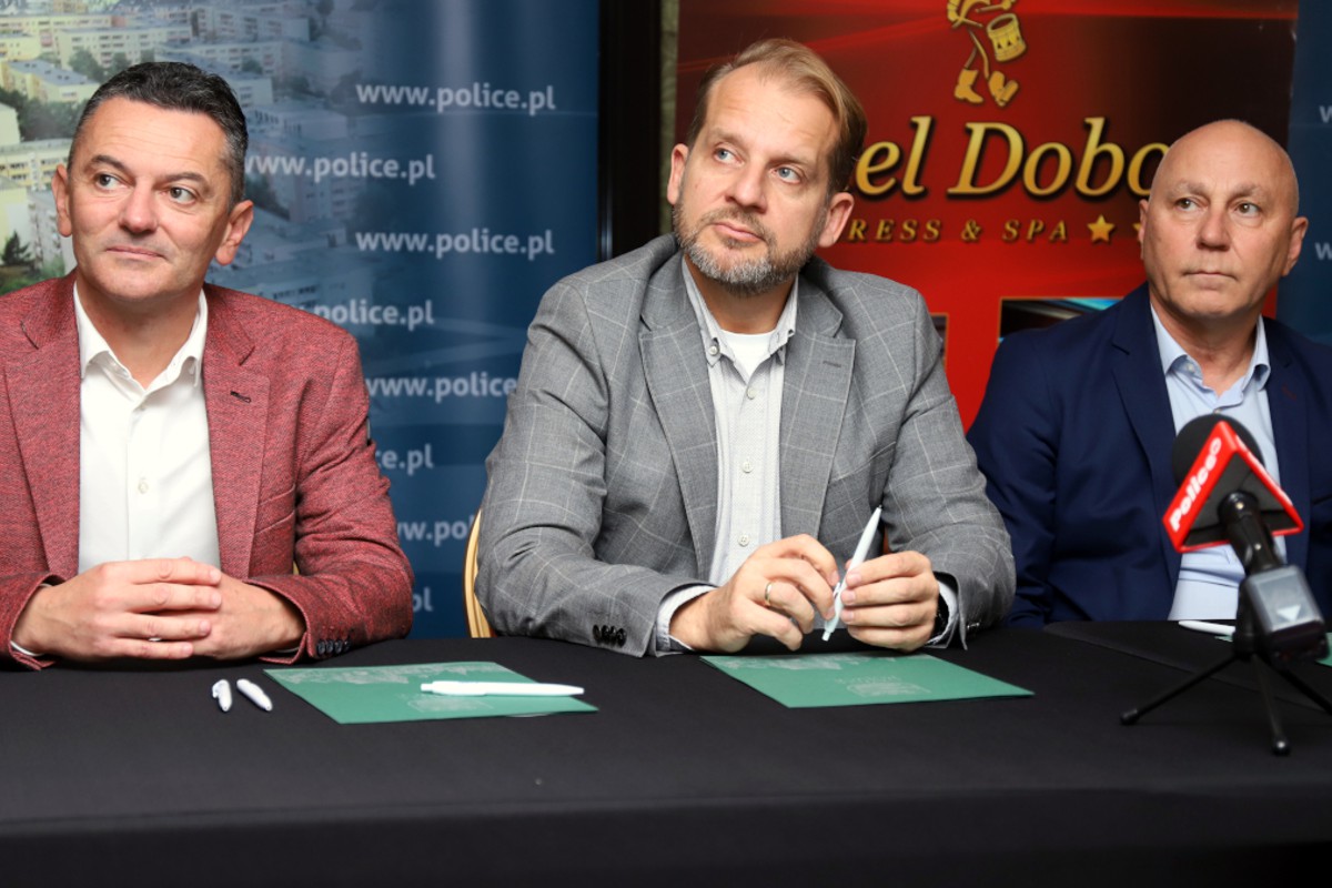 Trójstronny list o współpracy na rzecz rozwoju lokalnego sportu w Hotelu Dobosz w Policach parafowali dziś Krystian Kowalewski – burmistrz Polic, Maciej Mateńko – prezes Zachodniopomorskiego Związku Piłki Nożnej oraz Grzegorz Dobosz – właściciel hoteli w Policach i Świnoujściu.