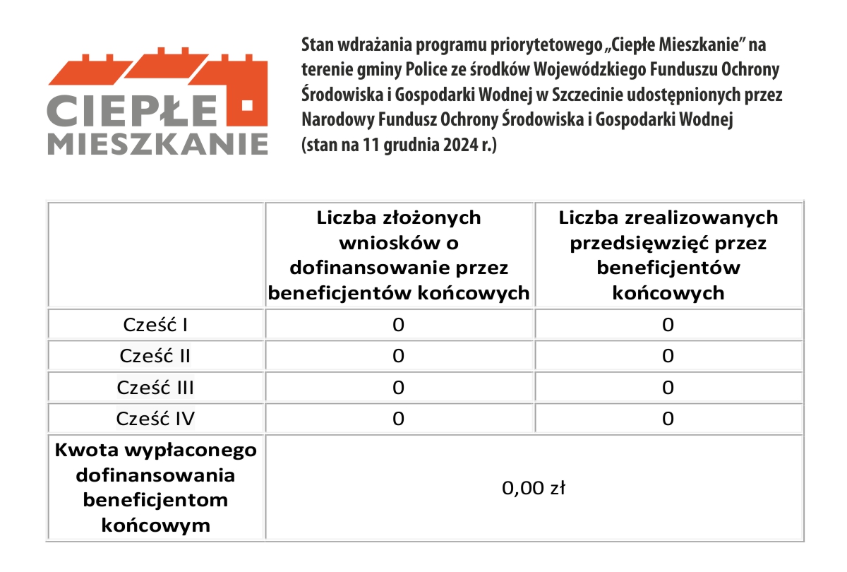 Ogłoszenie o naborze Wniosków o dofinansowanie przedsięwzięć w ramach Programu Priorytetowego „Ciepłe Mieszkanie” na terenie gminy Police