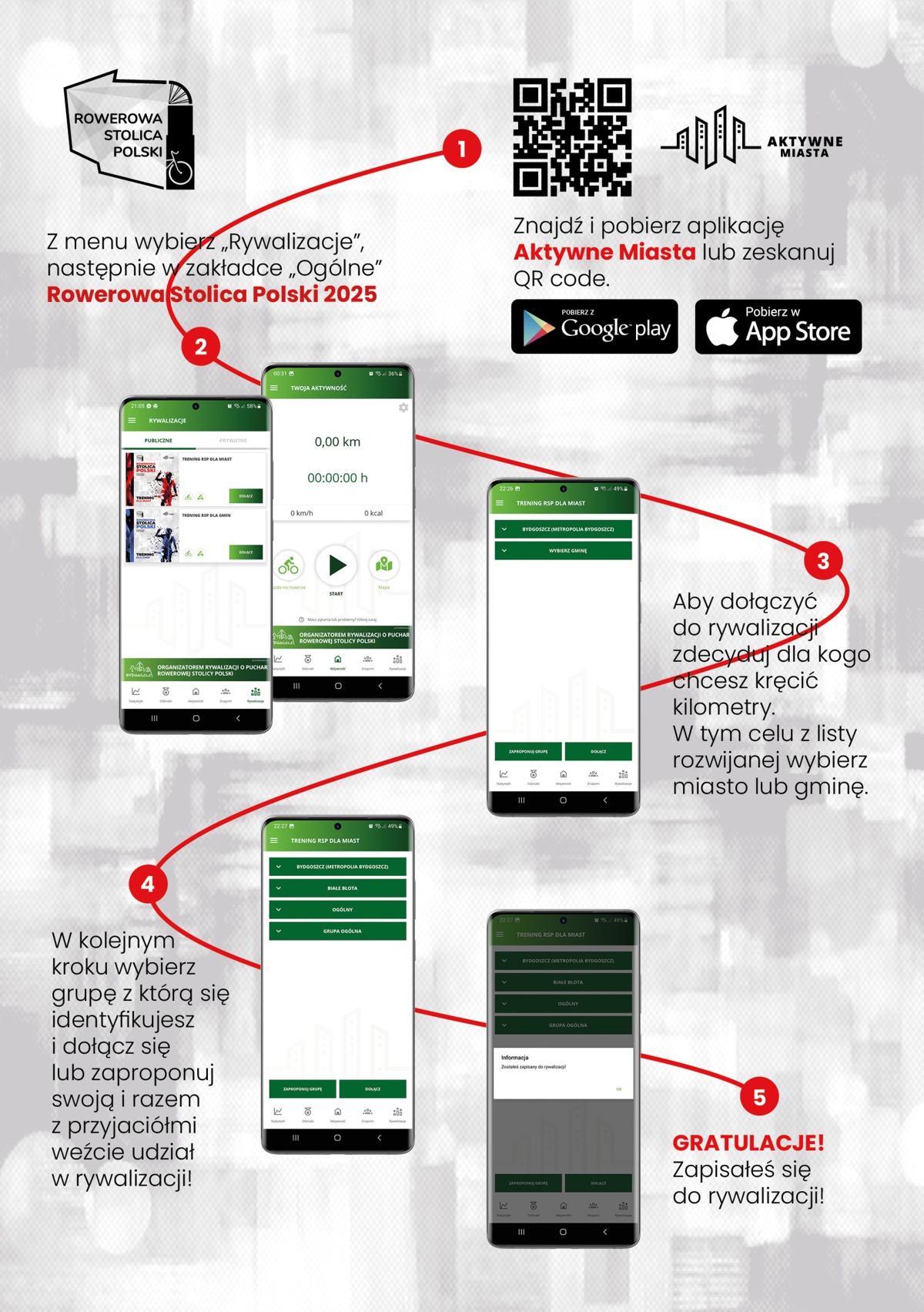Wystarczy zainstalować aplikację „Rowerowa Stolica Polski”, która śledzi trasę, rejestruje aktywności i przypisuje odpowiednią liczbę punktów do danego miasta. Ostateczny wynik zależy od zaangażowania i aktywności mieszkańców!