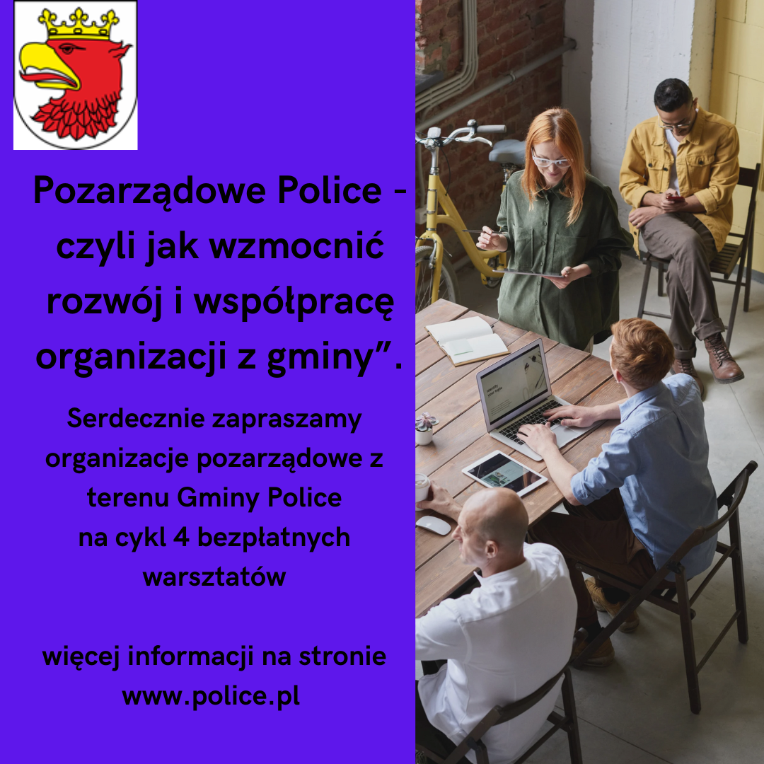Zapraszamy organizacje pozarządowe z gminy Police do udziału w cyklu warsztatów będących okazję do wymiany doświadczeń, zdobycia praktycznych umiejętności oraz budowania efektywnej współpracy między organizacjami a Urzędem Miejskim w Policach.
