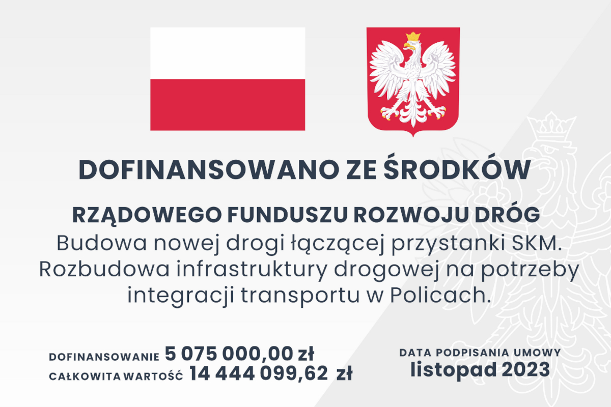 Całkowity koszt wykonanych robót budowlanych to blisko 14,5 mln zł. Wysokość dofinansowania z Rządowego Funduszu Rozwoju Dróg to ponad 5 mln zł. Wkład własny gminy Police to prawie 9,4 mln zł.
