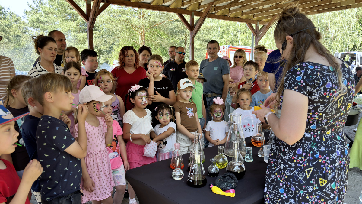 Największe zainteresowanie wzbudził pokaz profesorki Atomówki, która w ciekawy sposób przybliżyła dzieciom świat chemii. Nie zabrakło też smakołyków – popcornu, waty cukrowej, lodów i przekąsek z grilla.