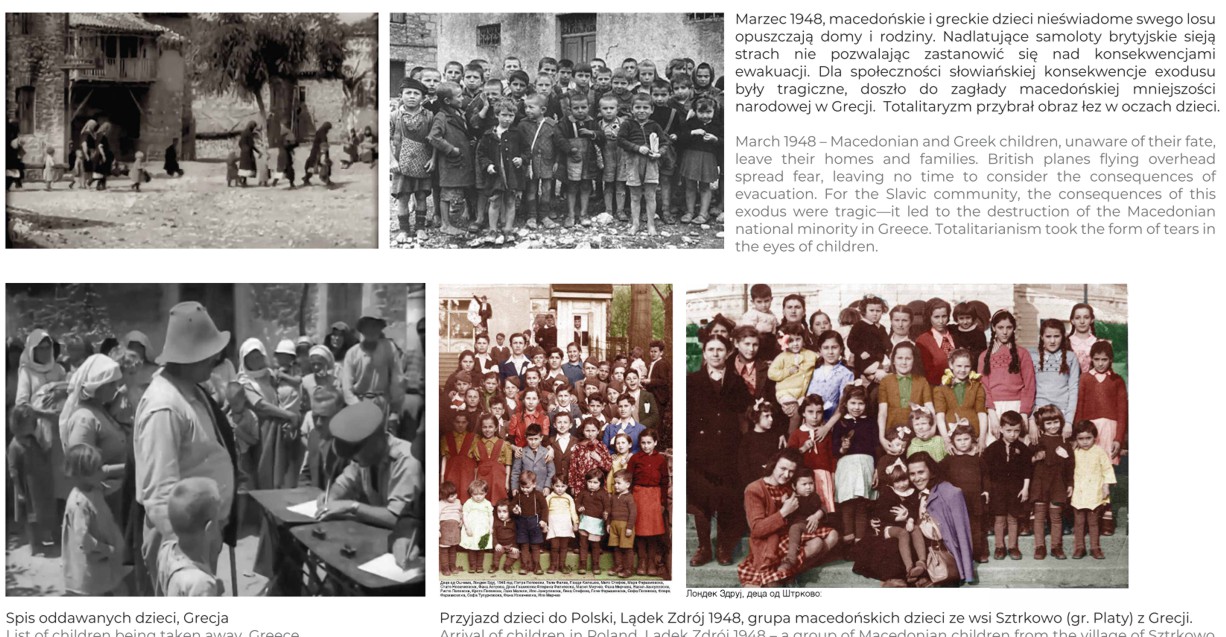 Pretekstem do wystawy i stworzenia filmu były tragiczne wydarzenia związane z wojną domową w Grecji, która wybuchła w 1946 roku. Autorem jest Petro Aleksowski, Macedończyk. Jego ojciec Mito był wśród 28 tysięcy dzieci, greckich i macedońskich, które wywieziono z terenów zagrożonych do krajów bloku sowieckiego. Polska przyjęła 3500 dzieci obu narodowości, część z nich trafiła do Polic, m.in. wspomniany ojciec autora filmu i wystawy.